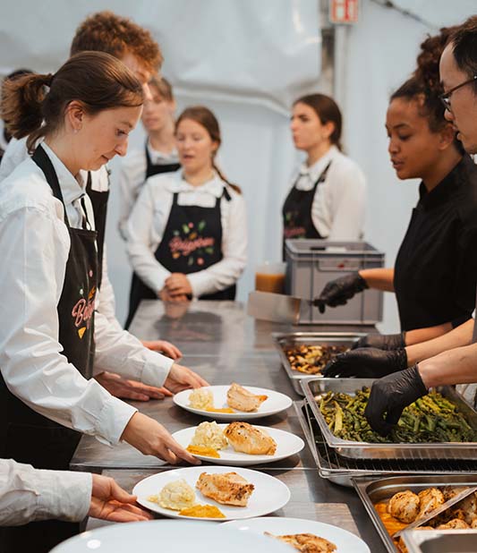 Depuis une dizaine d’années, nous possédons une activité de traiteur durable avec laquelle nous avons la joie d’être présent·es sur des centaines d’événements privés ou corporate (ou d’entreprise, pour les plus francophiles). On a aussi ouvert un comptoir traiteur situé à Schaerbeek, notre commune de cœur, dans lequel vous pouvez retrouver des bons petits plats maison et de saison ainsi que des produits bien choisis en direct de nos producteur·rices. En 2023, Belgobon est également devenu le premier traiteur à vélo de Bruxelles ! Bref, on ne s’ennuie pas chez Belgobon.