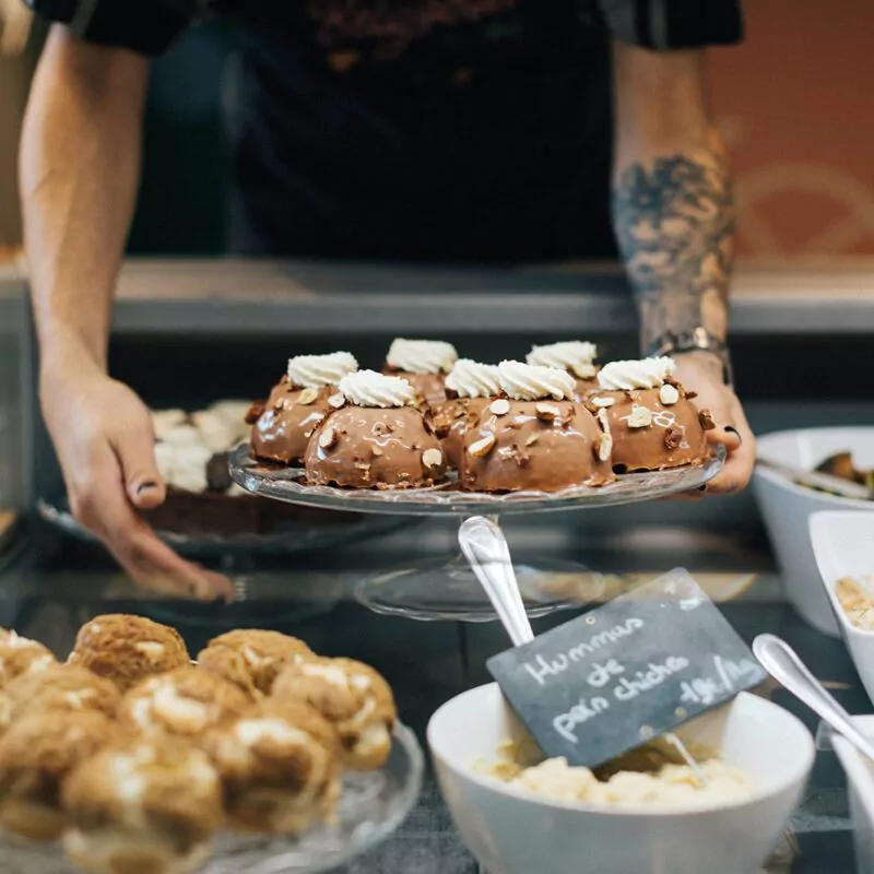 Salades du jour, pains au levain, sandwichs garnis, pâtisseries gourmandes, plats à emporter, le tout fait maison avec des bons produits de saison. Côté épicerie : une sélection bien choisie de nos produits bio et/ou en circuit (très) court.