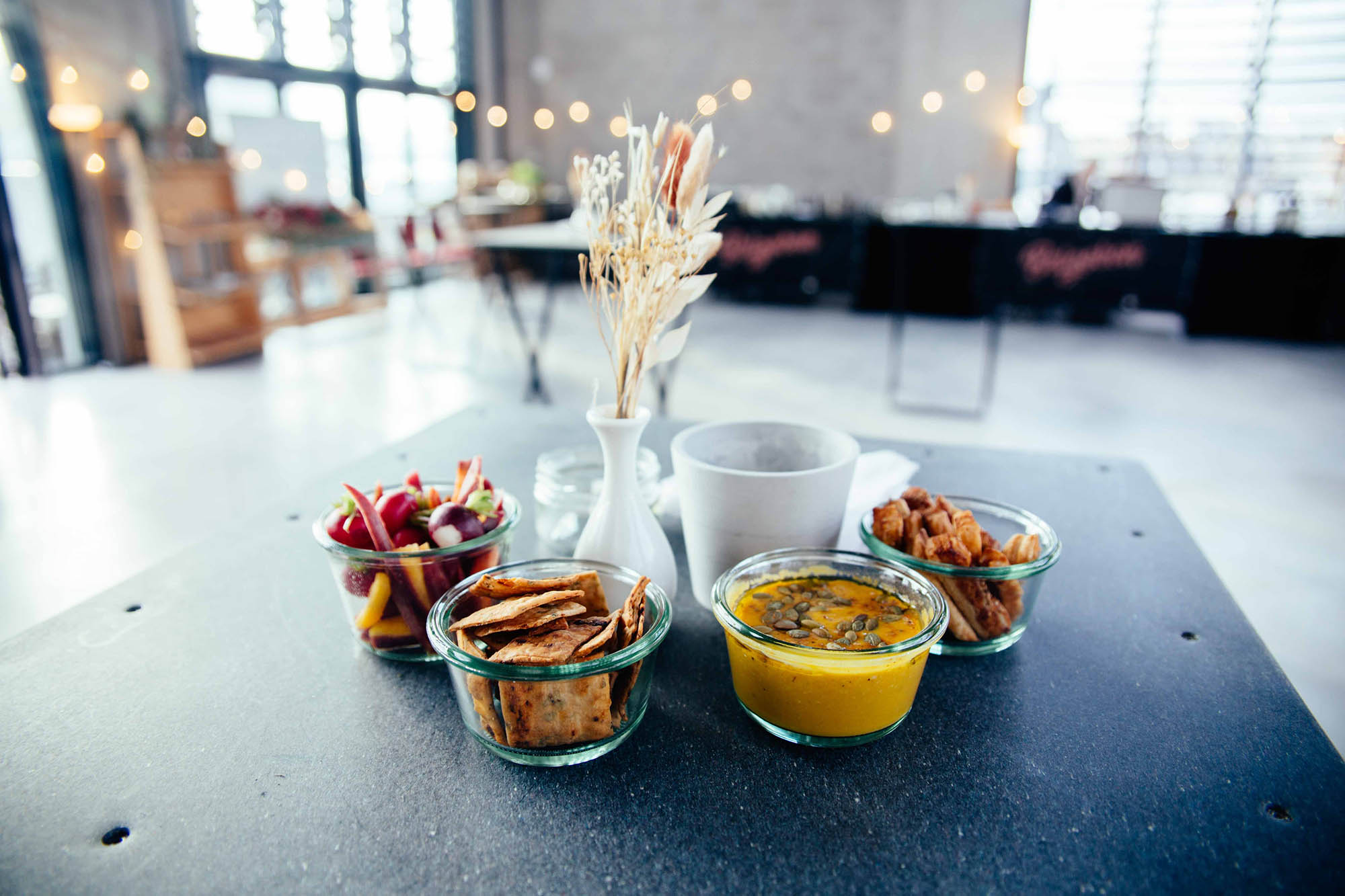 On accompagne tout ça d’un assortiment de crudités, de houmous et de crackers Mad Lab.